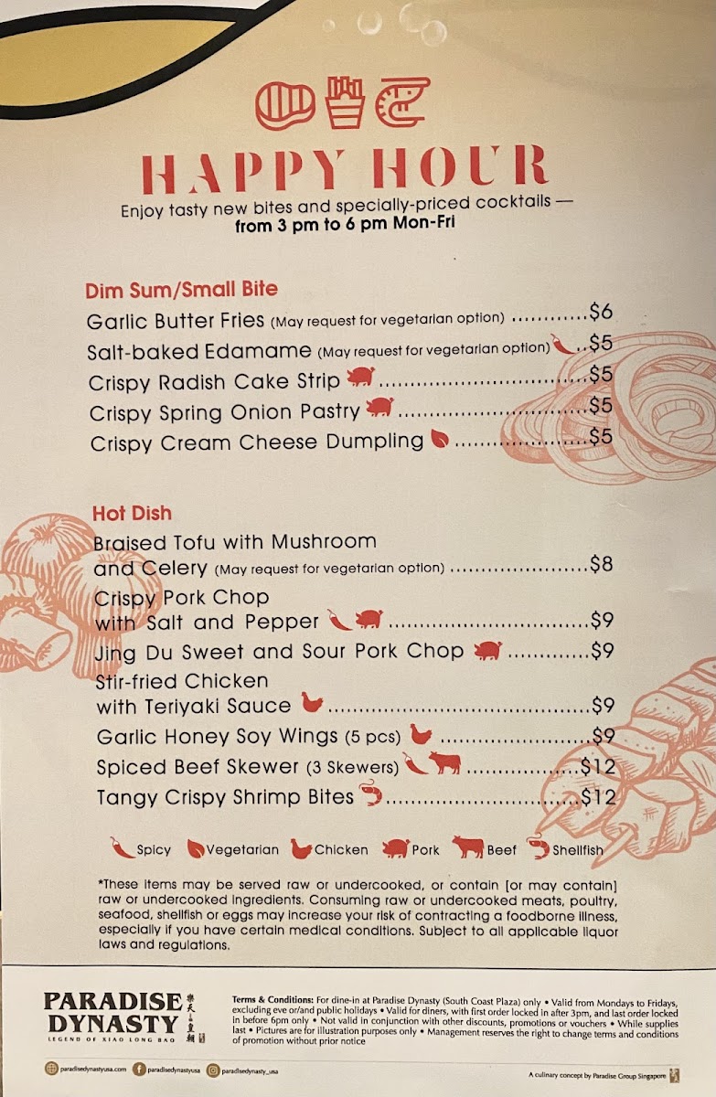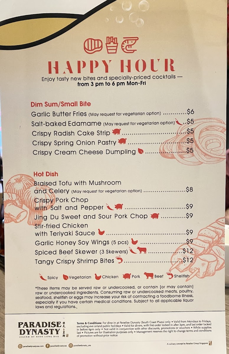 So, if you're in the mood for authentic yet innovative Chinese cuisine, stop by Paradise Dynasty for some of the most flavorful Xiao Long Bao and enjoy a pleasant dining experience. Don’t forget to check out their happy hour specials, where you can indulge in your favorite dishes without breaking the bank!